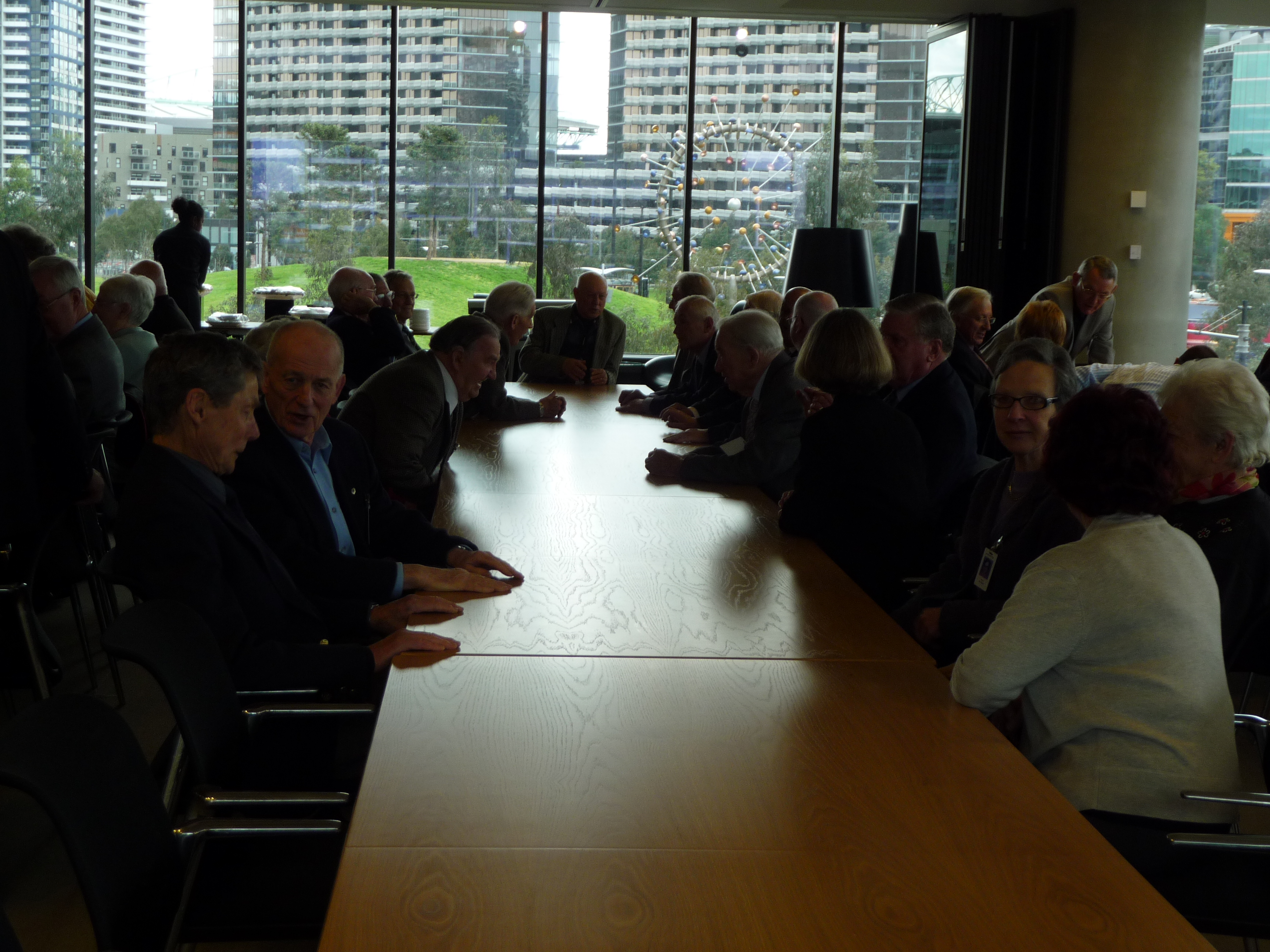 of Members not seen for a while. We had an excellent meeting room overlooking the marina which was a comfortable venue and a great selection of food provided by the ANZ Catering team. Maggie Aitken, Program Director, Global Services and Operations was our guest speaker and has been involved with the building project since its inception in 2005. We had a very interesting presentation followed by a short dvd showing how the building was gradually built and highlighting the state of the art features enjoyed by the 6000+ staff who work there. We hope to organise another function at ANZ Centre next year and will try and include a guided tour of the building next time. Photos from the event can be found in the photo gallery.