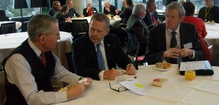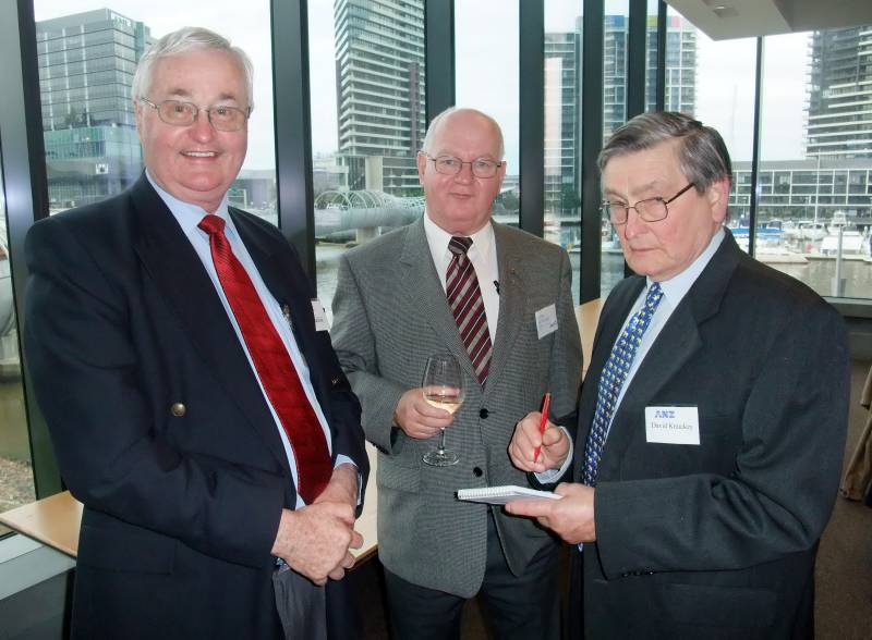 Secretary Peter Pritchard advised members of the apologies, bereavements and forthcoming meetings. Our newest member Bernadette Lynch and our long time member Terry Talbot who flew in from Evandale, Tasmania were attending their first luncheon meeting and those not seen for a while or returning from holidays included Ian Davies, Neil Dawtrey, Ray Gill, Val Goldsworthy, Phil Goodier, Frank Hatfield, Larry James and Keith Witney .It was a pleasure to welcome several of the partners of members attending and this made for a very sociable luncheon spent in the ANZ Headquarters at 833 Collins Street with widespread views of the city and Yarra . The catering was first class and several of the attendees were also given a guided tour of part of the premises which was greatly appreciated by those present.