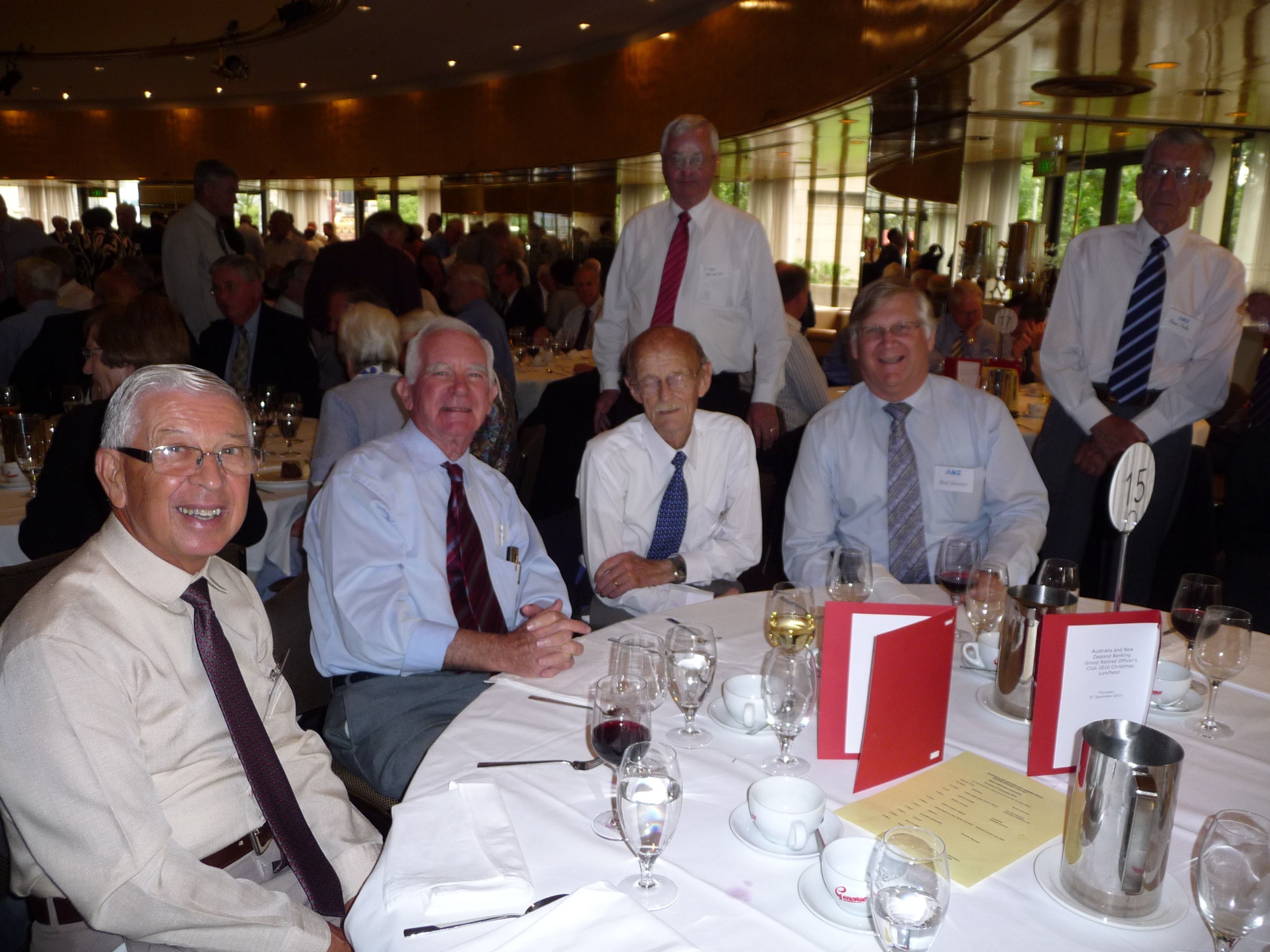 The 2010 Xmas lunch held at the ANZ Pavilion was enjoyed by 280 members. Neville Pearson, ANZroc President opened the proceedings and proposed the loyal toast. Mike Smith, CEO was present along with his Executive management team and gave an impressive speech on the progress of ANZ this year. George Lawson provided an entertaining summary of his time with the Bank before proposing a toast to ANZ. More to come in the newsletter but in the meantime here are some photos of the event.
