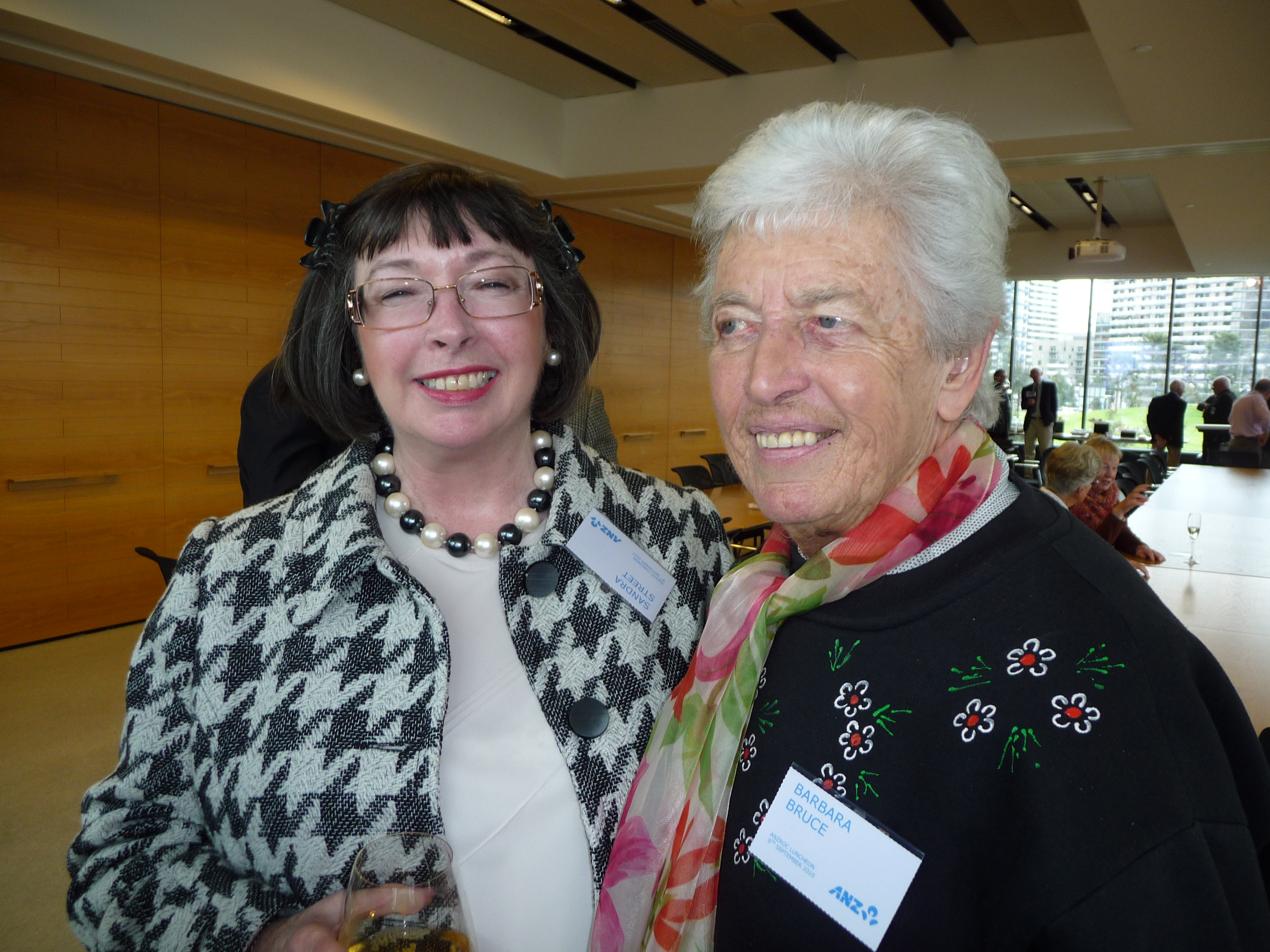of Members not seen for a while. We had an excellent meeting room overlooking the marina which was a comfortable venue and a great selection of food provided by the ANZ Catering team. Maggie Aitken, Program Director, Global Services and Operations was our guest speaker and has been involved with the building project since its inception in 2005. We had a very interesting presentation followed by a short dvd showing how the building was gradually built and highlighting the state of the art features enjoyed by the 6000+ staff who work there. We hope to organise another function at ANZ Centre next year and will try and include a guided tour of the building next time. Photos from the event can be found in the photo gallery.