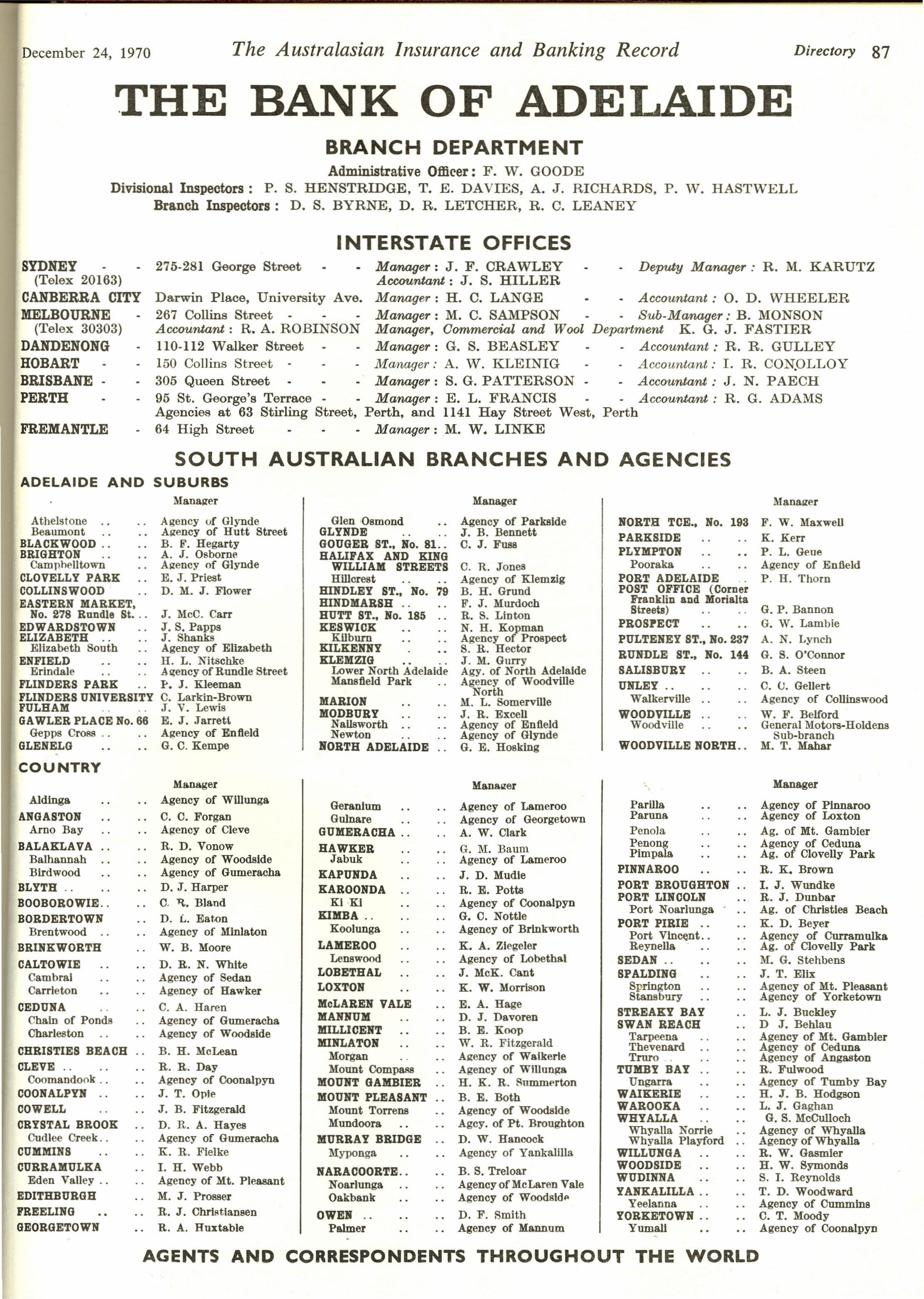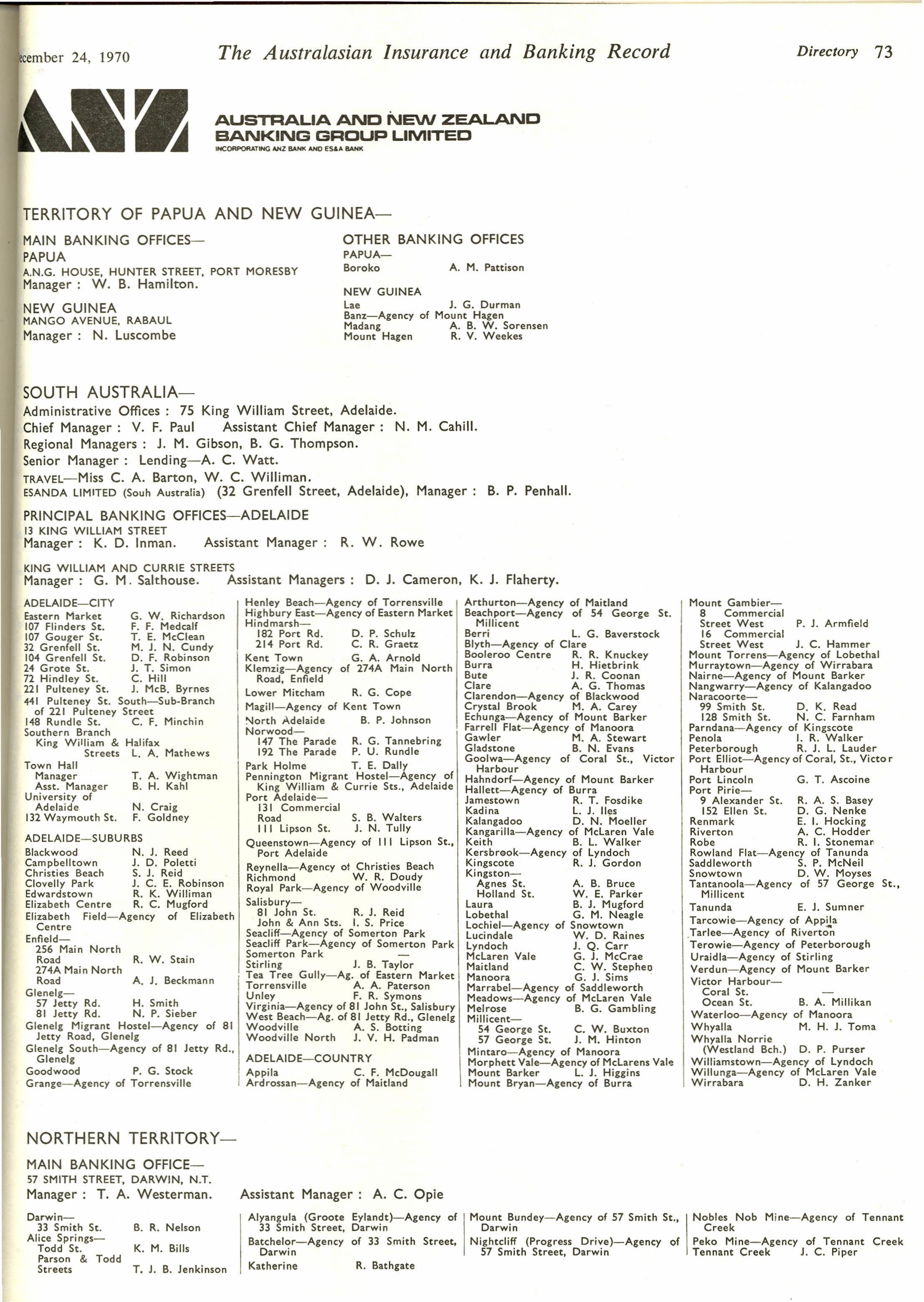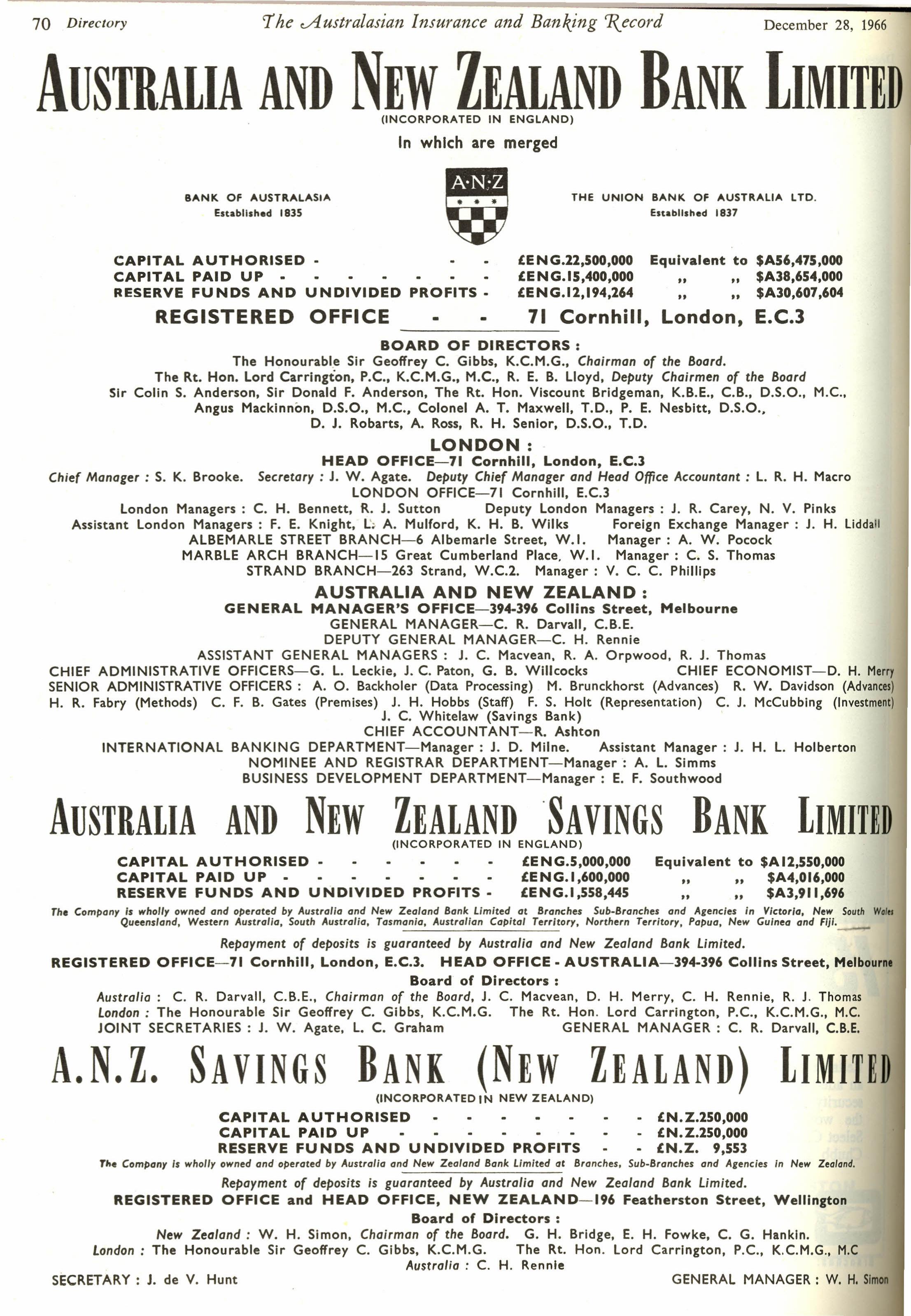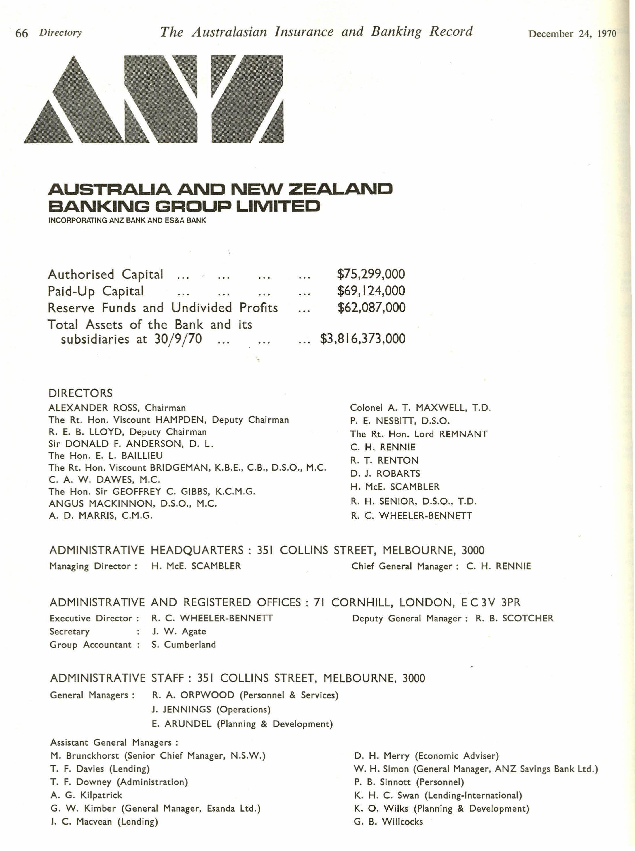 Check out this Gallery and see if you can find your name or someone you used to work with or for. Many of the future ANZ CEO's/ MD's are there in their earlier roles inc Charles Rennie, Mac Brunckhorst, Will Bailey and John Milne. Have fun checking them out. Also lots of memories of London with Mr Pinks, Mr Sutton (Norman and Jack but we were not allowed to address them by their Christian names) and Rick Wheeler-Bennett getting a mention, not to mention all the Sirs and Lords who used to be on the ANZ Board.Times have certainly changed. I can see current anzroc alumni Ron Adams, John Sudholz and Brian Christensen on some of the walls in SA and New York.