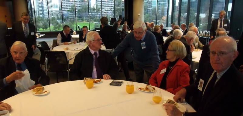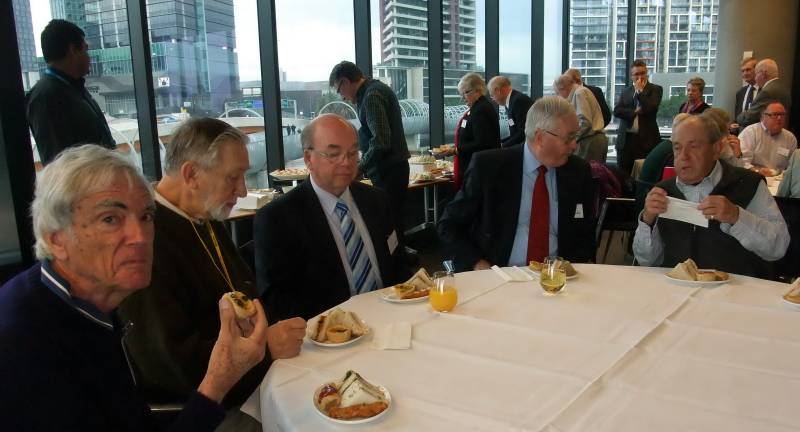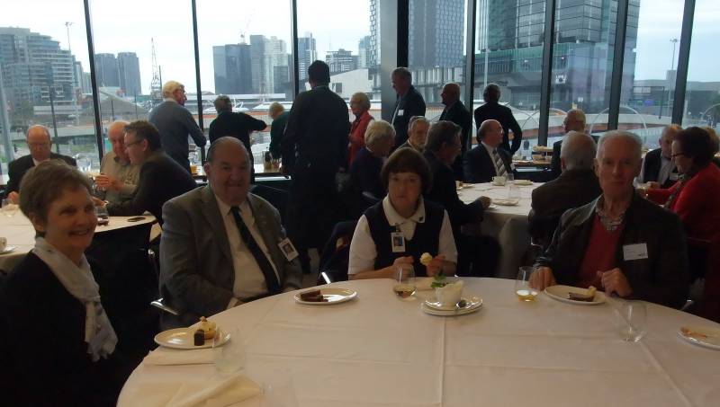 Secretary Peter Pritchard advised members of the apologies, bereavements and forthcoming meetings. Our newest member Bernadette Lynch and our long time member Terry Talbot who flew in from Evandale, Tasmania were attending their first luncheon meeting and those not seen for a while or returning from holidays included Ian Davies, Neil Dawtrey, Ray Gill, Val Goldsworthy, Phil Goodier, Frank Hatfield, Larry James and Keith Witney .It was a pleasure to welcome several of the partners of members attending and this made for a very sociable luncheon spent in the ANZ Headquarters at 833 Collins Street with widespread views of the city and Yarra . The catering was first class and several of the attendees were also given a guided tour of part of the premises which was greatly appreciated by those present.
