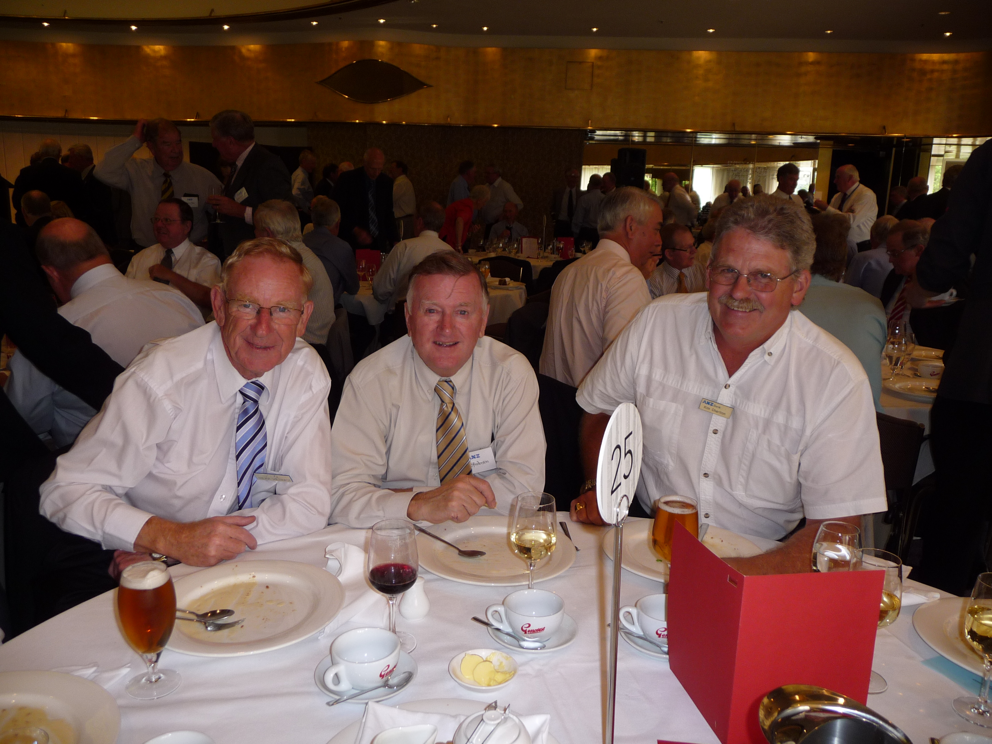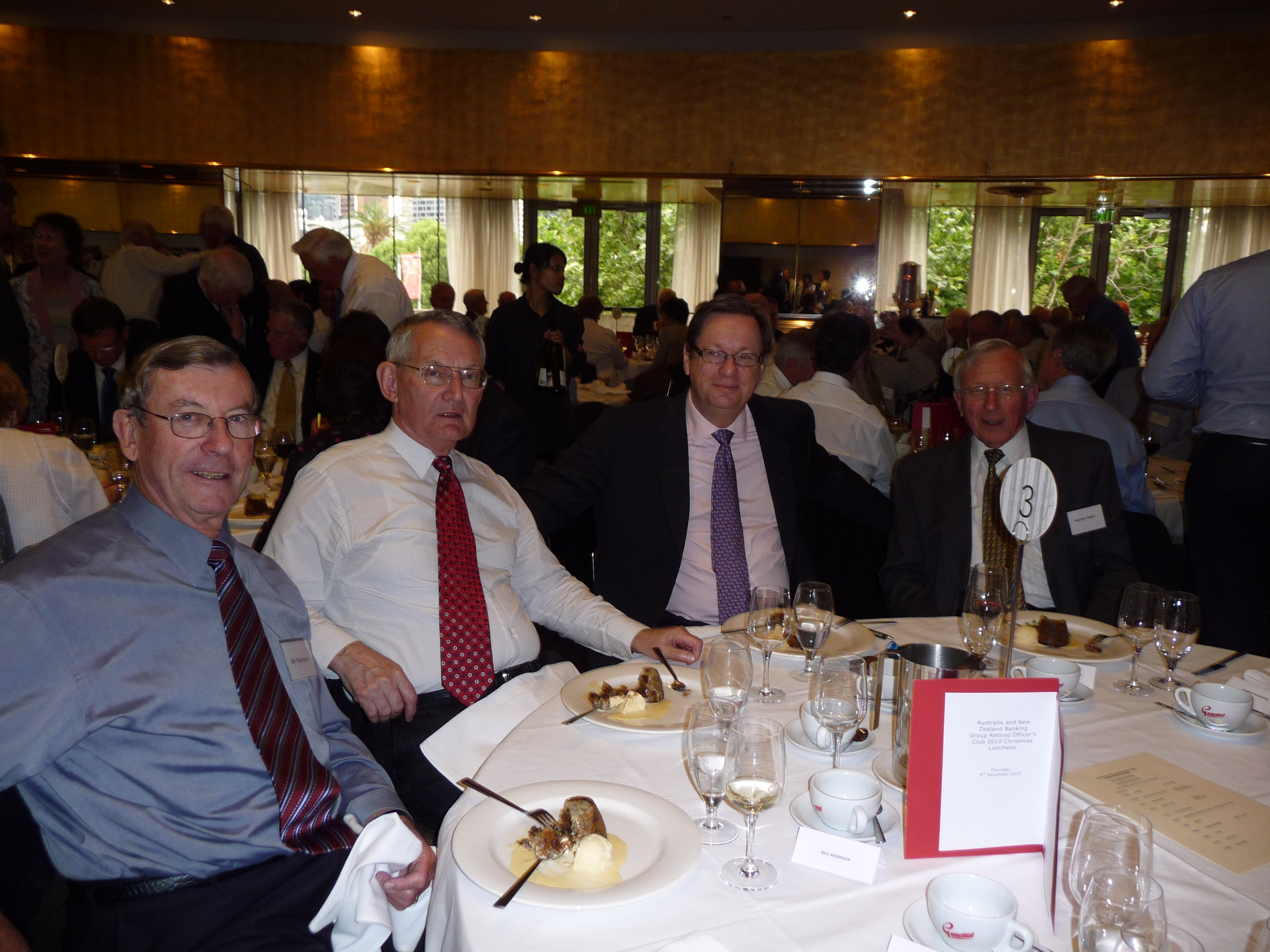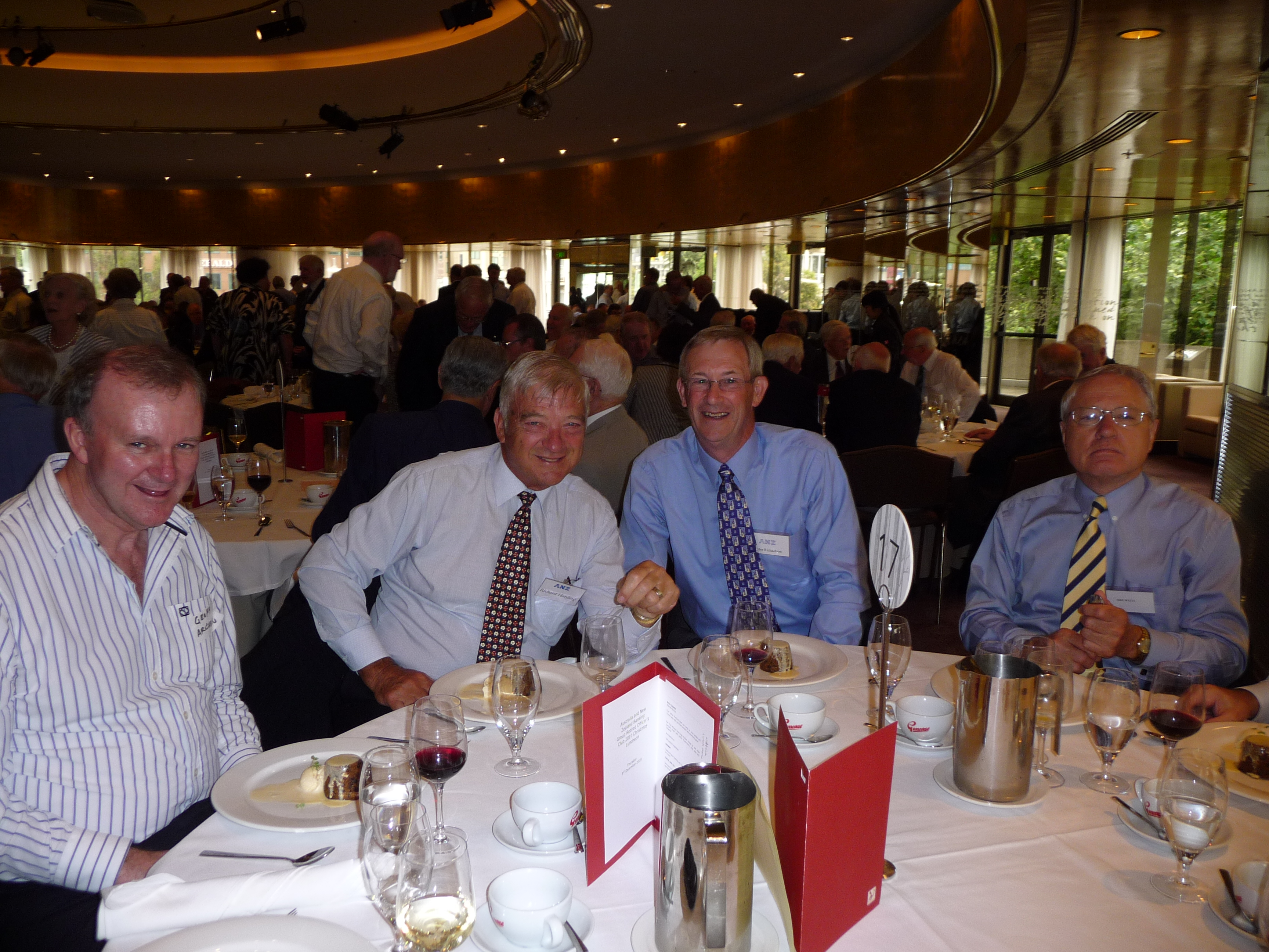 The 2010 Xmas lunch held at the ANZ Pavilion was enjoyed by 280 members. Neville Pearson, ANZroc President opened the proceedings and proposed the loyal toast. Mike Smith, CEO was present along with his Executive management team and gave an impressive speech on the progress of ANZ this year. George Lawson provided an entertaining summary of his time with the Bank before proposing a toast to ANZ. More to come in the newsletter but in the meantime here are some photos of the event.