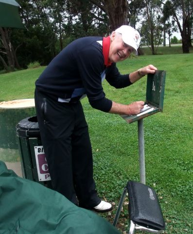 There were blue skies over Traralgon on Wednesday and again on Friday. Unfortunately for us our golf day was on Thursday which dawned with grey sky and persistent rain. A little bit of bad weather wasn't going to stop 35 intrepid golfers from a long anticipated day of golf to determine the  10th anniversary winner of the Jim Coffey trophy. The scores were always likely to be on the low side due to the conditions but John Winders won the competition with a score of 38 points off a handicap of 19 having finished in runner-up position last year.  John Inglis , a previous winner in 2007 playing off 18 was runner-up with 36 points. Kathy Shady won the Ladies competition with 32 points with Lesley Cooke as runner-up. Kathy Trace outdid everyone with a hole in one on the 15th. The winners were presented with their prizes by Pasqualina Coffey.